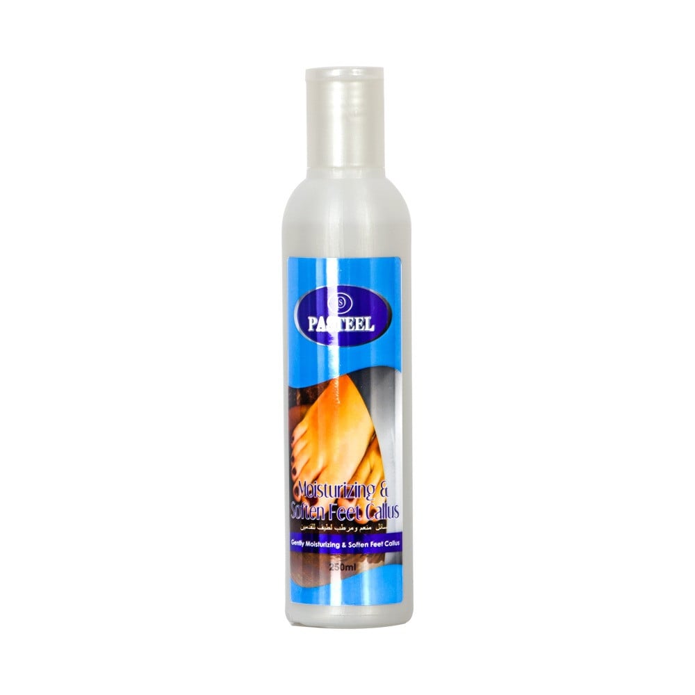 لتنعيم وترطيب القدمين ضع السائل على القدم لمدة 3 الى 5 دقائق